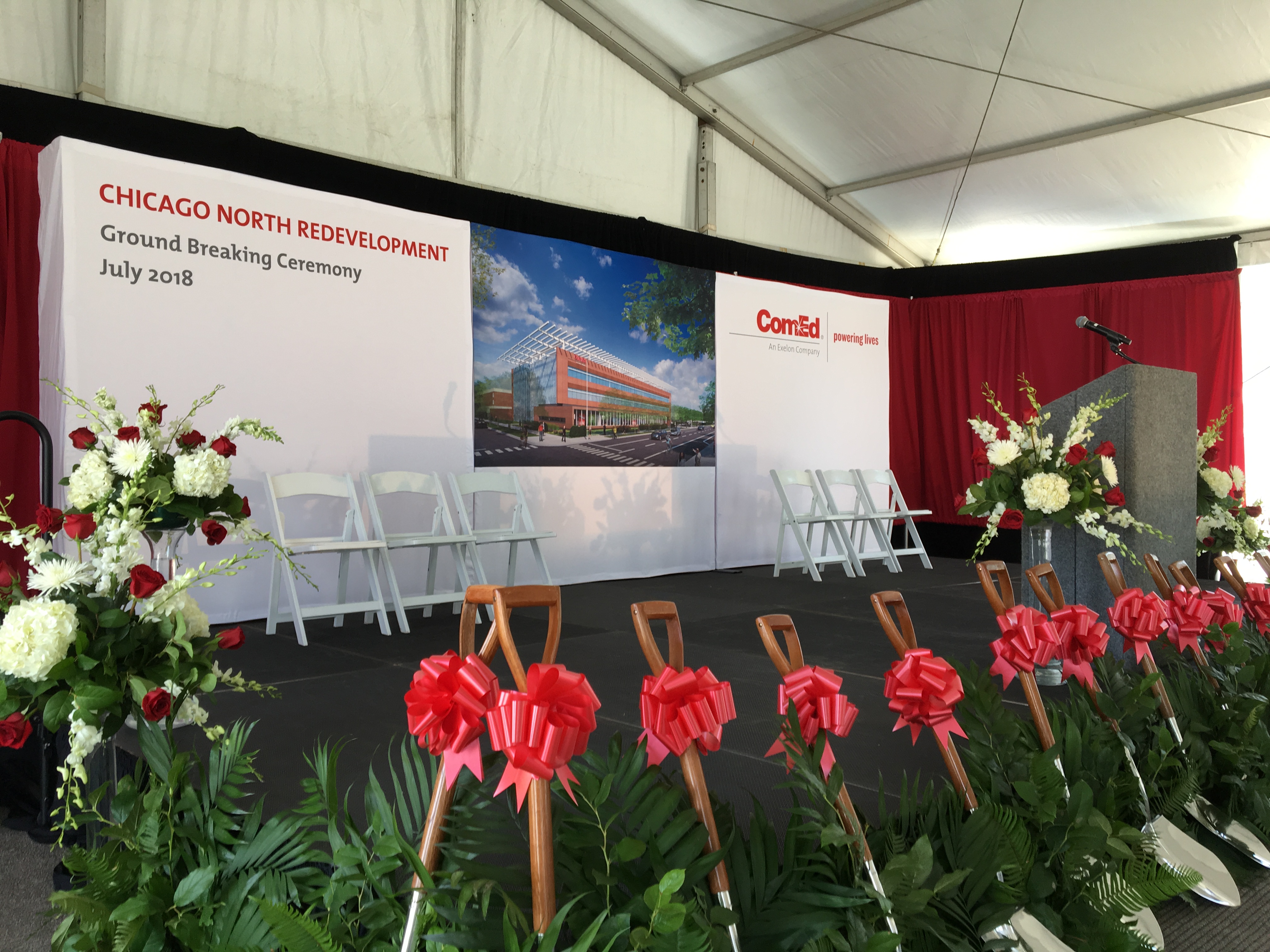 ComEd called upon the Machine to help organize a Ground Breaking Ceremony for its new, updated facilities being built on the same site as its existing Chicago North hub. The event featured a press conference with addresses by corporate leadership, multiple elected officials, and a union representative. A catered breakfast and lunch offered networking opportunities before and after the speeches and ceremonial breaking of ground.
