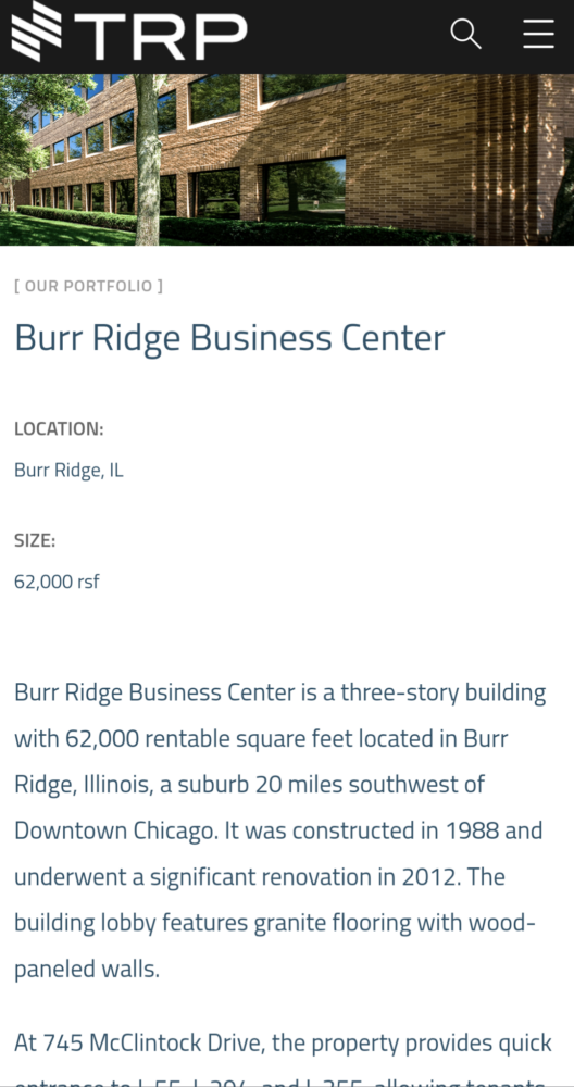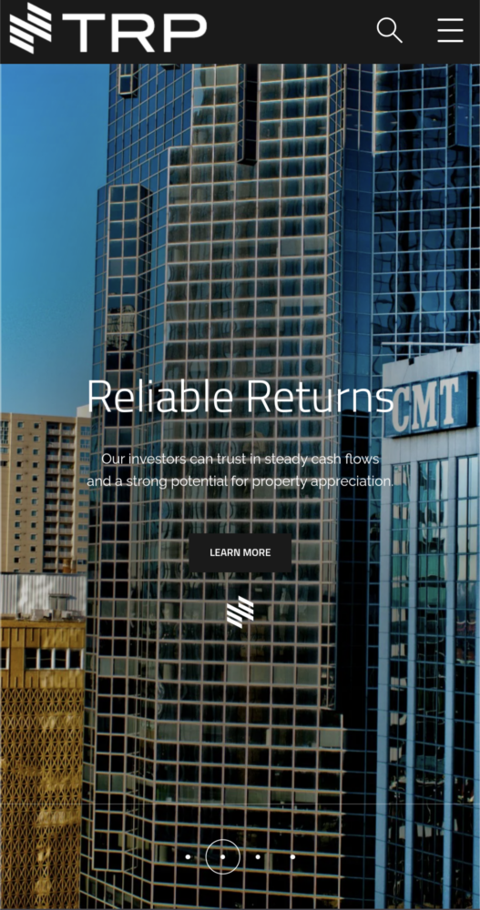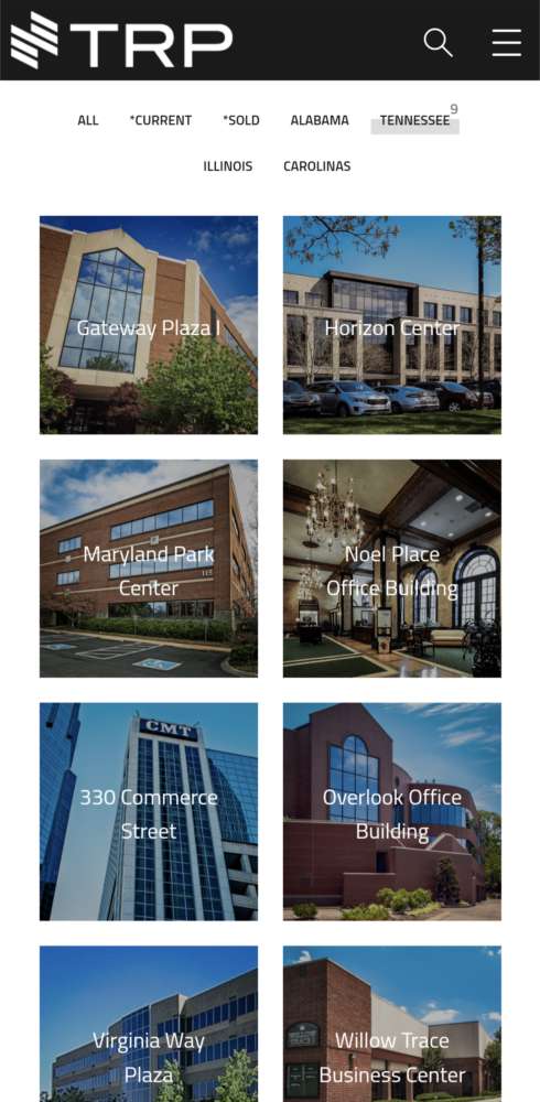 TRP Investments recommissioned the Machine to replace the Drupal website we had generated more than a decade earlier with an updated, mobile-responsive web design. We designed and developed a sleek, searchable WordPress website following new mobile standards. Category buttons allow users to easily filter TRP’s investment portfolio to display properties by region or status. Each property is plotted within an interactive regional map to demonstrate the relative proximity to major cities, highways, and other investment properties.